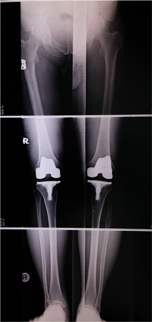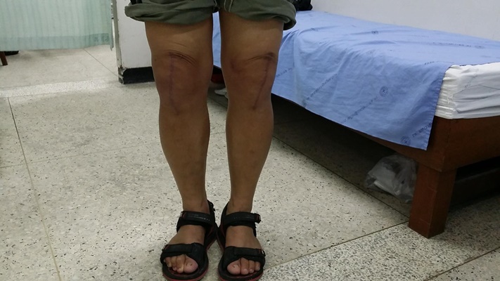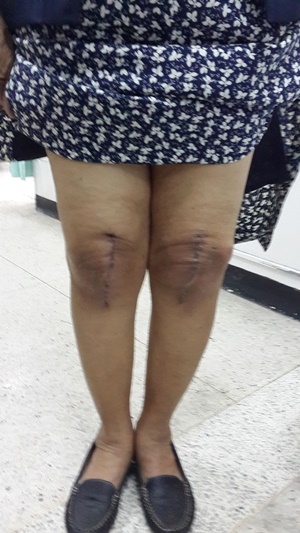 ในวันนี้ขอยกตัวอย่างผู้ป่วยโรคข้อเข่าเสื่อมทั้ง 2 ข้าง ที่ทำให้ผู้ป่วยมีอาการปวดข้อเข่า เดินลำบาก ข้อเข่าผิดรูป เดินเซและหกล้มได้ง่าย ซึ่งทำให้ผู้ป่วยใช้ชีวิตอย่างลำบากเป็นระยะเวลานานถึง 2 ปี ผู้ป่วยมีอาชีพรับราชการตำรวจ ทนทุกข์ทรมานจากอาการปวดเข่ามานาน ผู้ป่วยให้ประวัติว่า “เคยเจ็บเข่าจากอุบัติเหตุเล่นฟุตบอล จากนั้นก็เจ็บเข่าเป็นๆ หายๆ เรื่อยมา ในระยะสองปีมานี้อาการปวดเพิ่มขึ้นมากเรื่อยๆ คนรอบข้างเริ่มทัก โดยเฉพาะคุณแม่บอกว่าเดินไม่สวย เดินแปลกๆ เดินขาไม่ตรง เราก็ไม่ค่อยใส่ใจเท่าไหร่ จนมีอาการเจ็บมากจนทนไม่ไหว มาพบแพทย์ที่โรงพยาบาล แพทย์ได้ส่งตรวจทำการเอกซเรย์ เห็นได้ชัดเจนว่ากระดูกเข่าของเราชิดเข้าด้านในท่ายืนตรง แพทย์ได้แนะนำให้รักษาโดยการผ่าตัด ตอนแรกรู้สึกกังวล แต่เห็นกระดูกเข่าของตนเองจากภาพถ่ายรังสีแล้วก็คิดว่าถ้าปล่อยทิ้งไว้เข่าก็จะต้องชิดเข้ามากเรื่อยๆ ยังไงก็ต้องผ่าอยู่ดี และคิดว่าการเข้ารับการผ่าครั้งนี้ต้องเจ็บ ต้องปวดและใช้เวลาพักฟื้นนานแน่ๆ มีความกังวลว่ากระบวนการรักษาการผ่าตัดมันเป็นอย่างไร แพทย์จะทำอะไรกับเราบ้าง แต่หลังจากการได้คุยและได้รับคำแนะนำจากแพทย์ที่จะทำการผ่าตัด พร้อมกับเข้าไปศึกษาถึงวิธีการรักษา การปฏิบัติตัวและตัวอย่างประวัติการรักษาจากผู้ป่วยที่เคยรับการผ่าตัดรักษาเปลี่ยนข้อเข่าเทียมแล้ว ได้คลายความกังวลลงมาบ้าง หลังจากรับการรักษาด้วยการผ่าตัดเปลี่ยนข้อเข่าเทียมแล้วไม่ได้เจ็บปวดอย่างที่คิดไว้ สองวันแรกหลังผ่าตัดไม่ปวดเลย และเริ่มไปทำกายภาพ หัดเดินด้วยไม้สี่ขา หัดเหยียดเข่า งอเข่า ประมาณวันที่สี่เริ่มมีอาการระบม ปวด แพทย์ได้ให้ยาแก้ปวด อาการปวดทุเลาลงไป ทำกายภาพต่อได้สบาย มาตอนนี้หลังผ่าตัดประมาณยี่สิบวัน รู้สึกดีมาก แผลแห้งดี งอเหยียดเข่าได้เต็มที่ ยืนขาตรง เดินตรง เหมือนกับได้ชีวิตใหม่ขึ้นมาอีกครั้ง” สำหรับผู้ป่วยรายนี้ เนื่องจากเข่าของผู้ป่วยมีอาการผิดรูปทั้ง 2 ข้าง ทำให้ไม่สามารถเดินได้เป็นปกติ หลังจากที่ได้พูดคุยและอธิบายถึงข้อดีและความเสี่ยงจากการผ่าตัด เช่น โอกาสของการติดเชื้อ การเกิดลิ่มเลือดอุดกั้นในเส้นเลือดดำ การควบคุมอาการปวดหลังการผ่าตัด ก็ได้พิจารณารักษาด้วยการผ่าตัดเปลี่ยนข้อเข่าเทียมพร้อมกันทั้ง 2 ข้างให้กับผู้ป่วย หลังการผ่าตัดได้มีการให้ยาระงับปวดด้วยการวางสายเพื่อให้ยาลดอาการปวดที่โพรงประสาทในส่วนกระดูกสันหลัง ซึ่งผลการผ่าตัดทุกอย่างเป็นไปตามเป้าหมายที่วางไว้ คือ ลดอากา