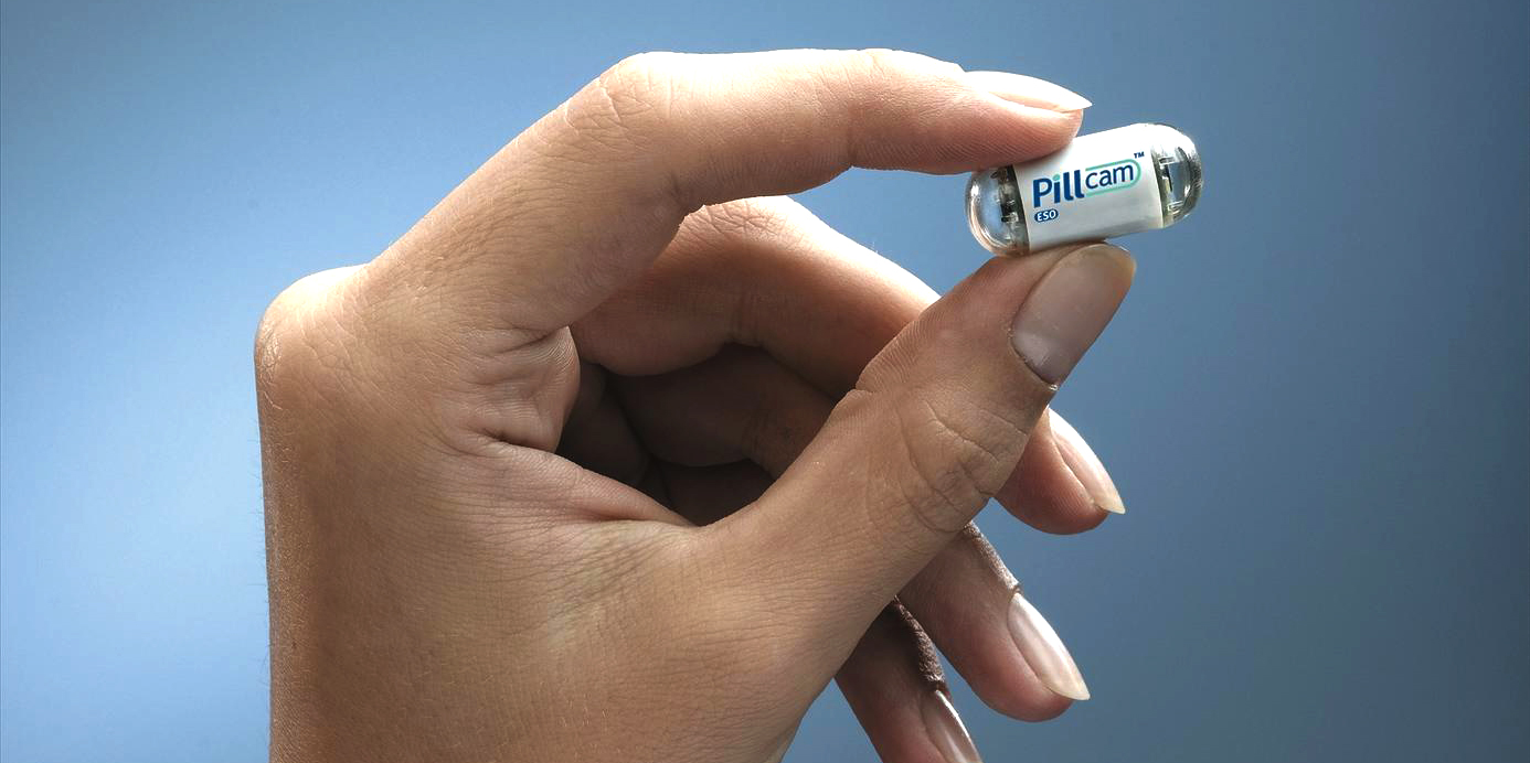 Capsule Endoscopy lets your doctor examine the lining of the middle part of your gastrointestinal tract, which includes the three portions of the small intestine (duodenum, jejunum, ileum). Your doctor will give you a pill sized video camera for you to swallow. This camera has its own light source and takes pictures of your small intestine as it passes through. These pictures are sent to a small recording device you have to wear on your body.