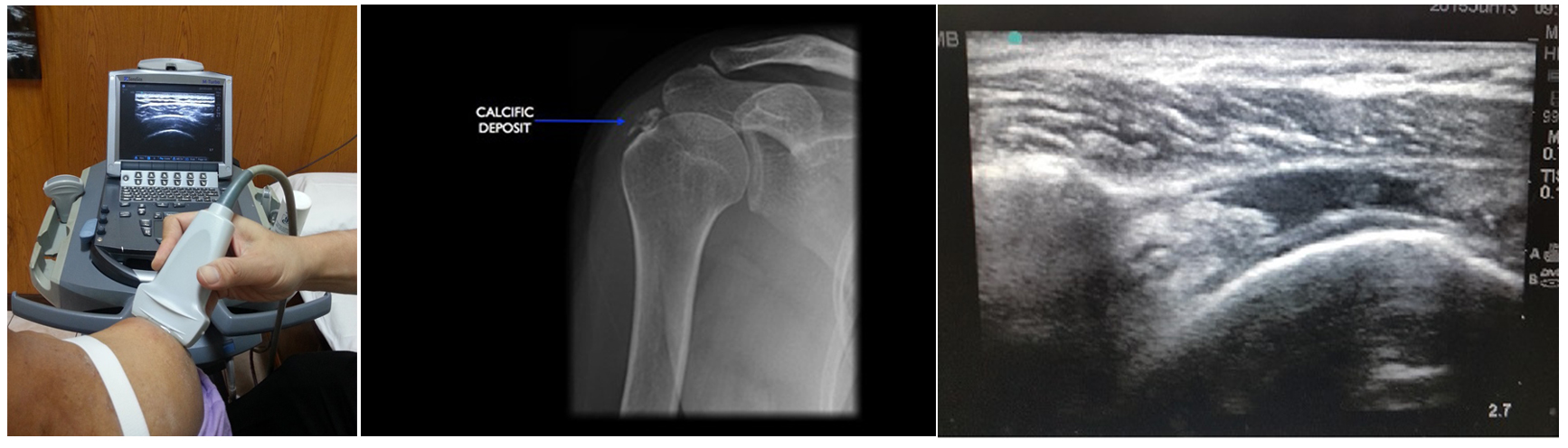ในปัจจุบันการใช้เครื่องคลื่นเสียงความถี่สูง (Ultrasound) นับว่ามีประโยชน์อย่างมากในการช่วยในการวินิจฉัยและประเมินสภาพของเส้นเอ็นในบริเวณข้อไหล่ ข้อดีของการตรวจด้วยคลื่นเสียงความถี่สูง คือ สามารถตรวจได้ง่ายและได้รับการวินิจฉัยอย่างรวดเร็วจากแพทย์ที่มีประสบการณ์ในการตรวจ ผู้ป่วยไม่ต้องได้รับแสงรังสีซึ่งมีความปลอดภัยต่อผู้ป่วย ราคาไม่แพงมากเหมือนกับการตรวจด้วยเครื่องแม่เหล็กไฟฟ้า (MRI) การตรวจด้วยคลื่นเสียงความถี่สูงจะสามารถทำให้แพทย์มองเห็นว่าเส้นเอ็นมีการบวม การอักเสบ การฉีกขาด หรือในบางครั้งที่มีหินปูนเกาะที่เส้นเอ็น ซึ่งจะทำให้เกิดการอักเสบ ผู้ป่วยมีอาการปวดไหล่มากจนไม่สามารถขยับข้อไหล่ได้ โดยอาการมักจะเป็นแบบเฉียบพลัน การตรวจด้วยคลื่นเสียงความถี่สูงก็จะช่วยให้แพทย์ทำการวินิจฉัยได้อย่างรวดเร็ว
