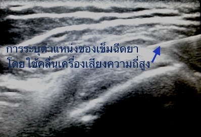 2. การฉีดยาเพื่อลดการอักเสบเข้าที่บริเวณข้อไหล่ เพื่อลดการอักเสบของเส้นเอ็นและเนื้อเยื่ออ่อนรอบๆบริเวณข้อไหล่ ยาที่ใช้ฉีดมี 2 ประเภท คือ 1.ยาสเตียรอยด์ชนิดฉีดเฉพาะที่ 2.ยาลดการอักเสบชนิดที่ไม่ใช่เสตียรอยด์ ซึ่งจะนำยาชนิดใดชนิดหนึ่งมาผสมร่วมกับยาชาแล้วฉีดเข้าไปยังตำแหน่งที่มีการอักเสบของเส้นเอ็น โดยใช้เครื่องคลื่นเสียงความถี่สูง (Ultrasound) เป็นตัวนำเพื่อระบุตำแหน่งที่จะฉีดยา ซึ่งจะทำให้แพทย์ผู้ทำการฉีดยาสามารถฉีดยาเข้าไปในตำแหน่งที่มีการอักเสบได้ถูกต้องแม่นยำ และไม่ได้ฉีดเข้าไปที่บริเวณเส้นเอ็นโดยตรง เพราะถ้าฉีดยาเข้าไปในตำแหน่งเส้นเอ็นโดยตรง ไม่ว่าจะเป็นยาชนิดใดก็ตาม ก็จะทำให้เกิดการขาดของเส้นเอ็นได้ ลดภาวะแทรกซ้อนจากการฉีดยาเข้าบริเวณหัวไหล่ได้มาก