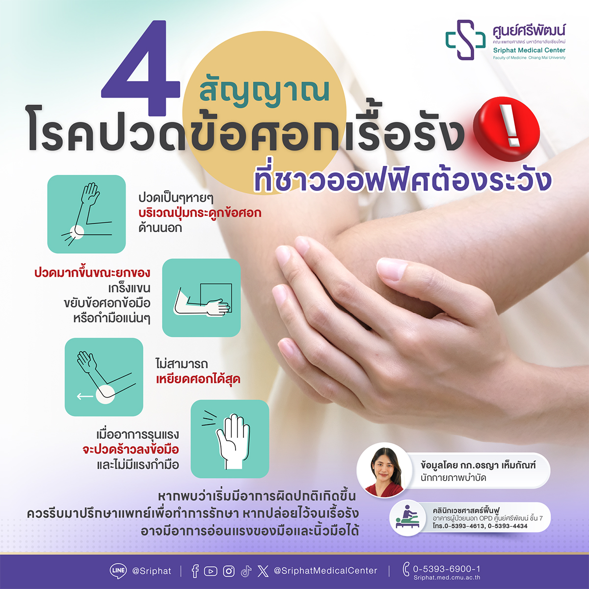 4 สัญญาณ โรคปวดข้อศอกเรื้อรัง (tennis elbow) ที่ชาวออฟฟิศต้องระวัง