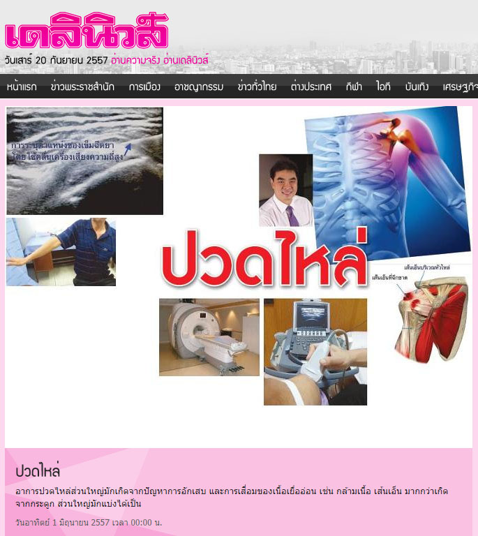 ท่านผู้อ่านคงเคยมีประสบการณ์ของการปวดไหล่ โดยเฉพาะเวลาบิดหมุนข้อไหล่ อาการปวดไหล่มีสาเหตุในการเกิดมากมายหลายอย่าง ซึ่งอาจเกิดจากปัญหาภายในข้อไหล่เอง อาจจะเกิดจากการอักเสบของเส้นเอ็น กล้ามเนื้อที่อยู่รอบๆ บริเวณข้อไหล่ ซึ่งอาการปวดไหล่มักจะมีอาการแย่ลง และปวดเพิ่มมากขึ้นเมื่อมีการเคลื่อนไหวของข้อไหล่ อาการปวดมักจะเริ่มมีอาการปวดบริเวณหัวไหล่ และร้าวไปยังบริเวณต้นแขน โดยเฉพาะคุณสุภาพสตรี อาจจะมีอาการปวดบริเวณหัวไหล่เมื่อหมุนไหล่ในการใส่เสื้อชุดชั้นใน หรือเสื้อยืด บางครั้งอาการปวดหัวไหล่อาจเกิดจากโรคหมอนรองกระดูกต้นคอเสื่อมกดทับเส้นประสาท ทำให้เกิดอาการปวดร้าวมายังที่บริเวณหัวไหล่ ตามเส้นประสาทที่ถูกกดทับ
