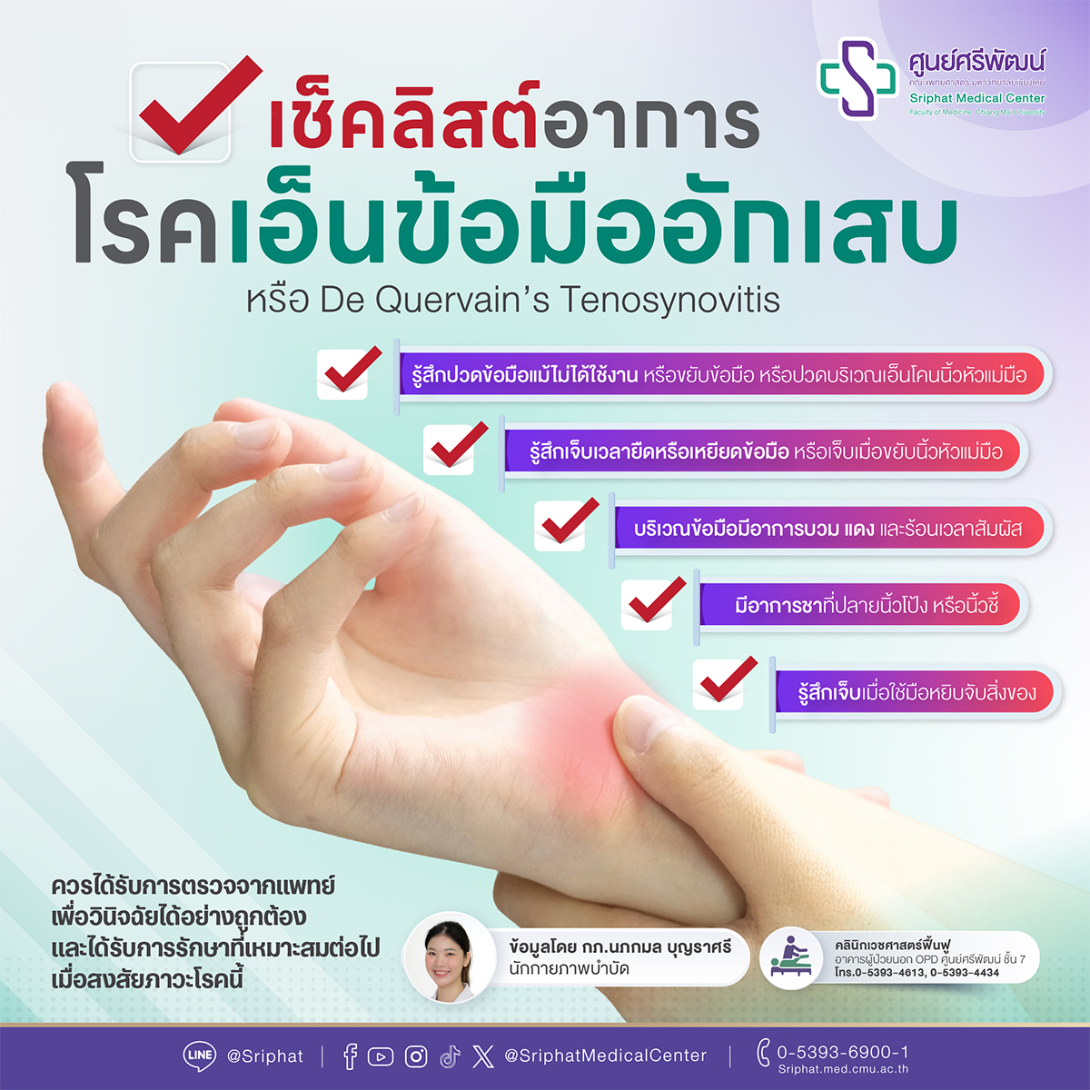 เช็คลิสต์อาการโรคเอ็นข้อมืออักเสบ หรือ De Quervain’s Tenosynovitis