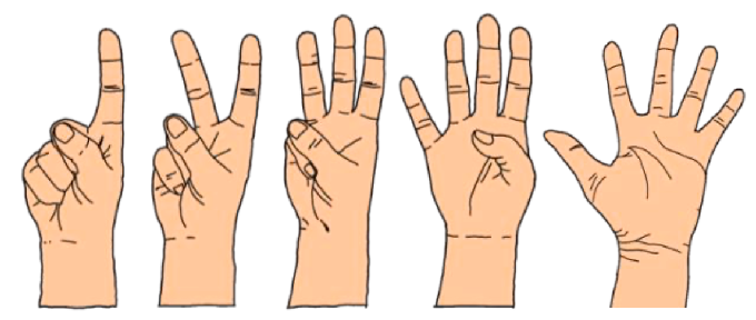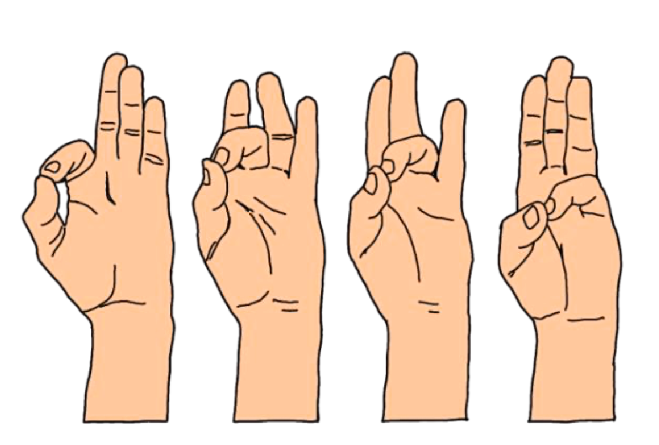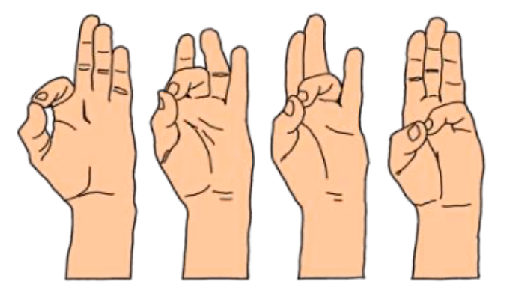 3.  งอนิ้วหัวแม่มือ แตะนิ้วชี้/นิ้วกลาง/นิ้วนาง/นิ้วก้อย สลับกันทีละนิ้ว