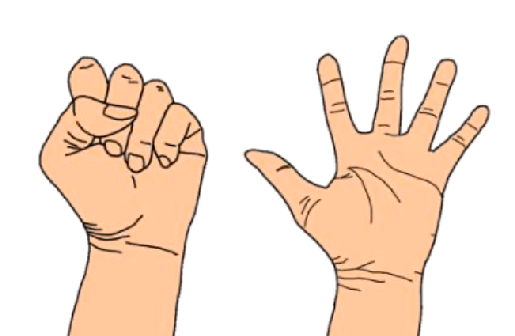 6. แบมือ-งอข้อนิ้วที่อยู่ตรงกลาง-กำมือหลวมๆ-กำมือในลักษณะนิ้วเหยียดกับฝ่ามือ