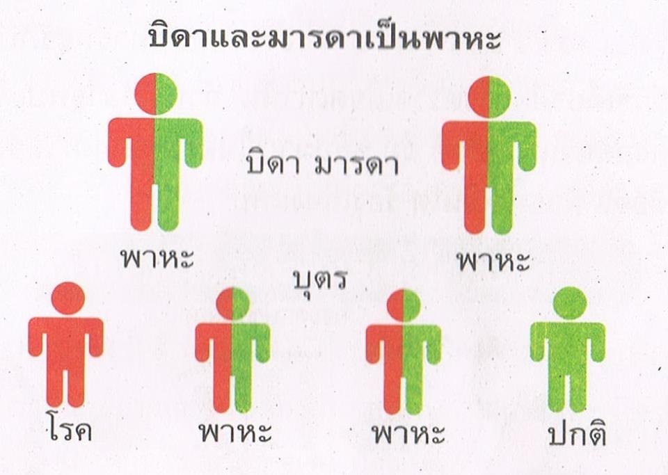 แผนภูมิภาพแสดงตัวอย่างการถ่ายทอดจากบิดามารดาที่เป็นพาหะทาลัสซีเมีย