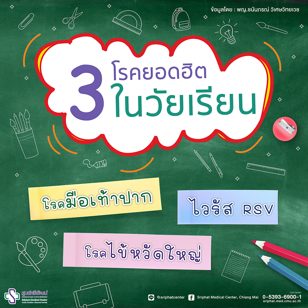 มีคุณพ่อคุณแม่หลายท่านที่มาพบหมอแล้วมักจะมีคำถามว่าทำไมลูกเราเมื่อก่อนก็แข็งแรงดี แต่พอเข้าโรงเรียนปุ๊บถึงป่วยบ่อยจังเลย ทั้งๆ ที่ก็พาไปฉีดวัคซีนครบตามตาราง บางคนฉีดวัคซีนเสริมทุกชนิดไปแล้วด้วย นั่นก็เป็นเพราะหลายๆ โรคนั้นเรายังไม่มีวัคซีนป้องกัน และบางโรคที่มีวัคซีนป้องกัน ผลการป้องกันก็ไม่ได้ครบ 100% นั่นเองค่ะ ส่วนวัคซีนตัวไหนอัตราการป้องกันอยู่ที่เท่าไหร่ลองคุยรายละเอียดกับคุณหมอที่ดูแลน้องดูนะคะ ช่วงที่น้องๆ อยู่ที่บ้านโอกาสติดโรคยังไม่มาก แต่พอเข้าสู่วัยเรียน เพื่อนๆ ร่วมชั้นเรียนเยอะ มักจะเลี่ยงไม่ได้ที่จะมีใครสักคนป่วยเป็นโรคนู่นโรคนี่ แถมห้องเรียนเดี๋ยวนี้มักจะเป็นห้องแอร์ ก็ยิ่งเพิ่มโอกาสการติดเชื้อมากขึ้นไปอีก นอกจากจะต้องป้องกันตัวเองทำให้ร่างกายตัวเองแข็งแรงที่สุด รับประทานอาหารให้ครบ 5 หมู่ ออกกำลังกายให้เป็นประจำแล้ว เรามาทำความรู้จักโรคที่น้องๆ มักจะเป็นกันบ่อย เอาไว้ดูแลตัวเองเบื้องต้นกันดีกว่า