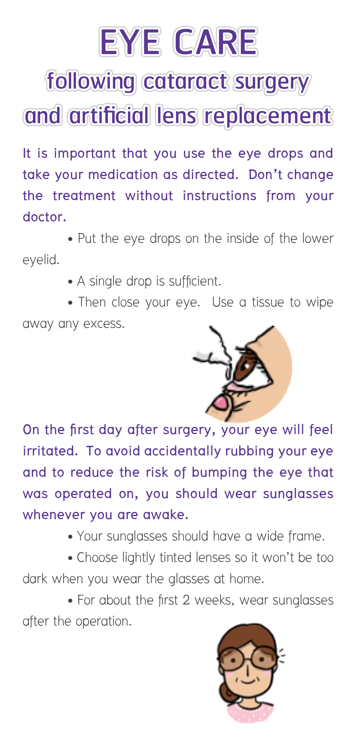 การดูแลหลังผ่าตัดลอกต้อกระจกใส่เลนส์ตาเทียม(แผ่นพับอังกฤษ)